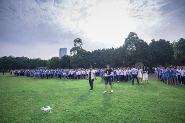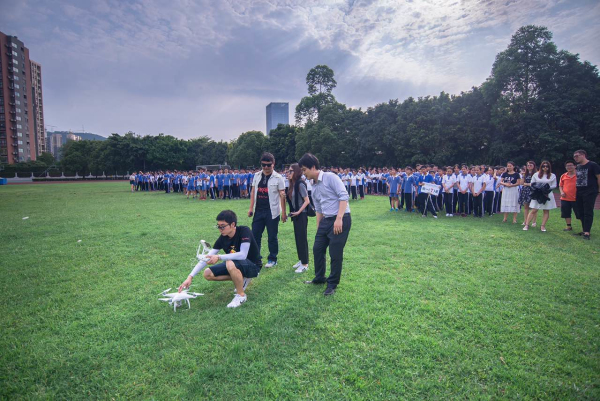 为了让同学们了解不同行业的发展,我校特别邀请飞来飞趣平台到校园,为同学们上一节生动有趣的无人机体验课。飞手陈Sir介绍了关于无人机的专业知识,讲解无人机的用途、安全知识,并展示了航拍的作品。接着,同学们来到操场进行造型航拍。