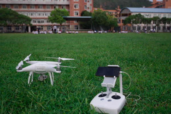 ▲为同学们进行航拍的是大疆无人机