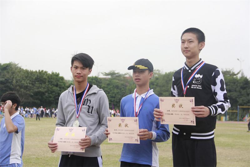 接下来,运动比赛正式开始。国际班的运动健儿们奋力拼搏,取得了一个又一个好成绩。G1-1班何秉其和李正邦两位同学分别获得跳高和跳远比赛第二名的好成绩。最厉害的是AS班蒋杰城同学获得全校跳远第一名的好成绩。AS班冯典文获得跳高第二名。我校同学齐心协力,最终还赢得团体50米迎面接力比赛第一名。我校老师们也积极参加教工组的跳大绳、扔实心球、投篮球比赛项目,为运动会增添色彩。
