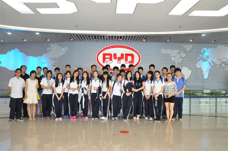 6月10日下午我校G1和G2年级的学生在各班主任及任课老师的带领下参观了比亚迪股份有限公司。