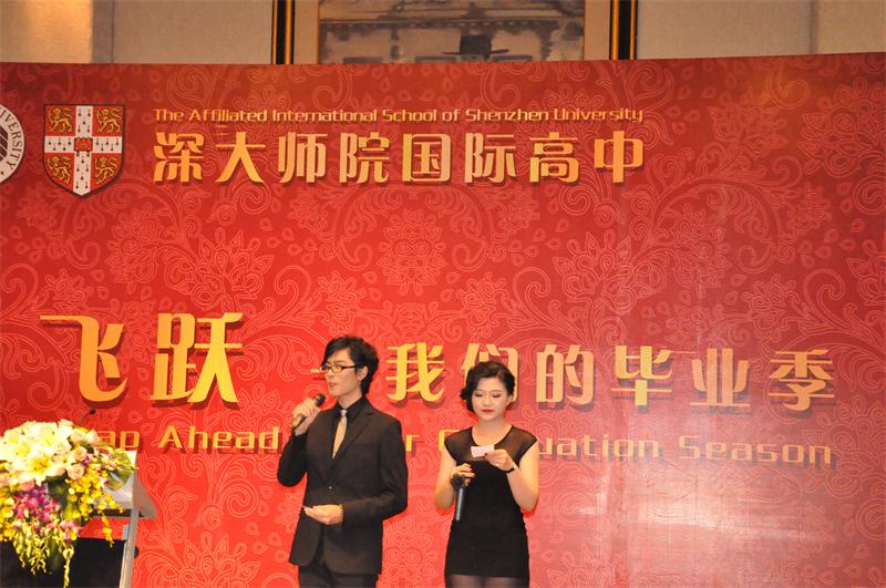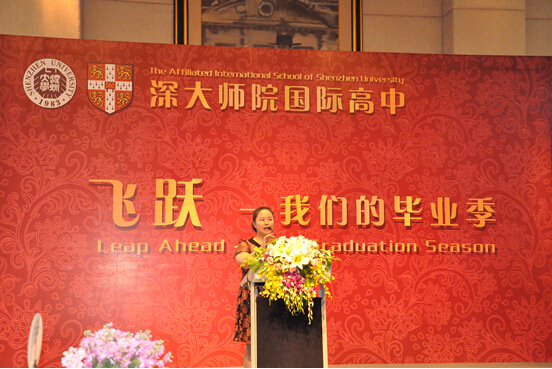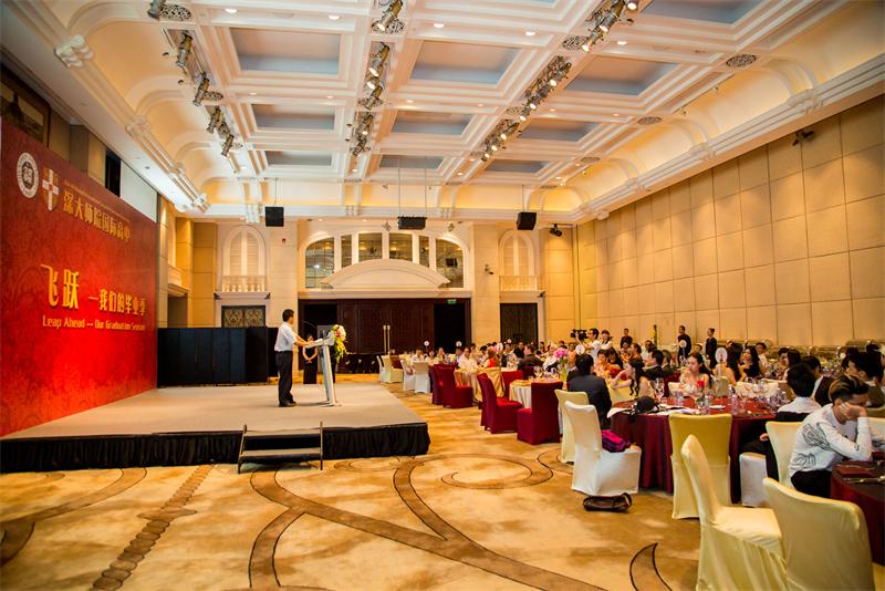 2014年6月15日下午,深大师范学院国际高中2014届毕业生毕业典礼在深圳华侨城洲际大酒店举行。下午5点钟典礼正式开始。出席本次典礼的嘉宾有深大附中刘为基副校长、我校教学总监李建华博士、中心执行主任王寅卯先生、教务部长刘小宁老师、深圳市中学语文学科带头人叶培祥老师等。各位领导、全体毕业生、全校职工及部分学生家长齐聚一堂,共同为毕业生们即将进入新的大学生活喝彩庆祝。