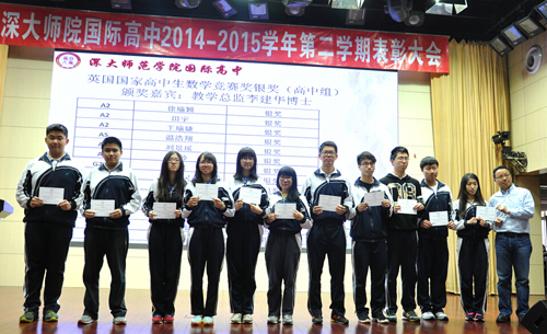 演讲之后,振奋人心的颁奖仪式正式开始。这次表彰大会是对上一学期学生们总体表现的一个总结。大会设立的奖项丰富,有优秀住宿生、优秀宿舍长、优秀班干部、优秀学生会干部、“三好”学生奖等。学校对参加英国数学挑战杯竞赛和物理奥林匹克竞赛获奖的学生也给予了表彰,还对参加学校校徽征集入围的学生给予表扬和奖励。
